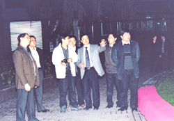 施副院长(左四)面对园区美景拍照 |