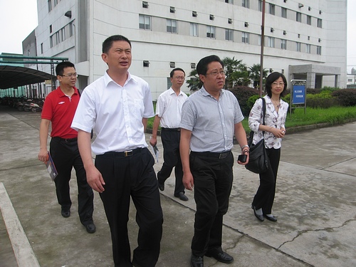 升华拜克公司总工程师储消和陪同叶彦考察园区