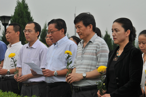 成都生物所党委书记叶彦向大家介绍了郭庆新烈士的生平事迹,他表示郭庆新同志和千千万万烈士一样,用生命谱写了惊天地泣鬼神的壮丽凯歌,践行了“人民的利益高于一切,随时准备为党和人民牺牲一切”的人生誓言。他们忠诚于党、忠诚于革命事业;他们胸怀宽广、胸襟坦荡;他们临危不乱、敢于牺牲、他们为祖国为人民奉献了自己的一切。改革的大潮澎湃而来,创新促进发展的号角已经吹响。作为成都生物所人,我们不仅要缅怀烈士、崇敬烈士,更是以烈士为榜样,向烈士学习。学习他们胸怀崇高理想,去肩负起科教兴国的历史使命,去担负起科技创新的崇高责任;学习他们勇于牺牲的大无畏精神,在中科院实施“率先行动计划”和全面深化改革进程中,解放思想、锐意创新、勇于担当、攻坚克难,高效、深入地推进研究所的改革,为“特色研究院”的建设、为研究所的健康发展、为中华民族的伟大复兴奉献自己的智慧和汗水。
