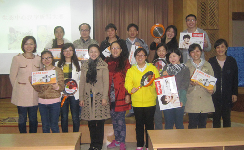 本次活动分场内和场外答题两种形式。一是,场内现场汉字听写;二是,针对生态中心野外考察和实验多,不能到场参赛的职工和学生,通过手机远程及时发送题目,请他们在规定时间内完成并将答案返回。比赛采用给出100个常用且容易混淆的成语进行听写,听写过程中大家可以结合词语的发音和解释来确定答案并快速写出。一个小时的答题完毕之后,评委当场阅卷,并快速统计出个人得分,然后排名。学生和职工分别评出一、二、三等奖。生物所工会副主席刘丽、人事处李琦、赵爱华分别为获奖人员颁发了奖品。
