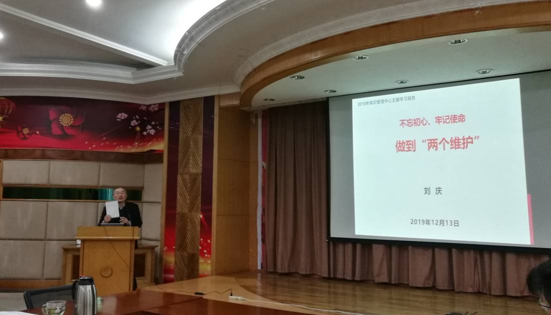 首先,副所长、党委委员刘庆同志以“不忘初心、牢记使命,做到‘两个维护’”为题同与会人员进行了交流。他从马克思、恩格斯、列宁、邓小平、延安时期维护党中央权威的历史启示论证了马克思主义建党学说的基本观点——党中央、全党必须有一个核心,回答了“为什么要有核心”;分析毛泽东为什么能够成为党的第一代领导集体的核心,阐释习近平总书记的领导核心地位的确立及其重大意义,回答了“谁能成为核心”;通过增强“两个维护”的三个自觉性和四个意识,回答了“怎样维护核心”。同时,带领大家一起回顾了“两个维护、四个全面、五位一体、中国共产党的初心使命、两个百年目标”的基本内容,以及科学院“科技报国、创新为民”和“三个面向、四个率先”的初心使命。刘庆要求,要不忘初心、牢记使命,以习近平同志新时代中国特色社会主义思想为指引,自觉在思想上政治上行动上同以习近平同志为核心的党中央保持高度一致,强化政治责任,保持政治定力,把准政治方向,提高政治能力,为创新型国家和世界科技强国建设,肩负起国家战略科技力量的使命担当,做出应有的贡献。