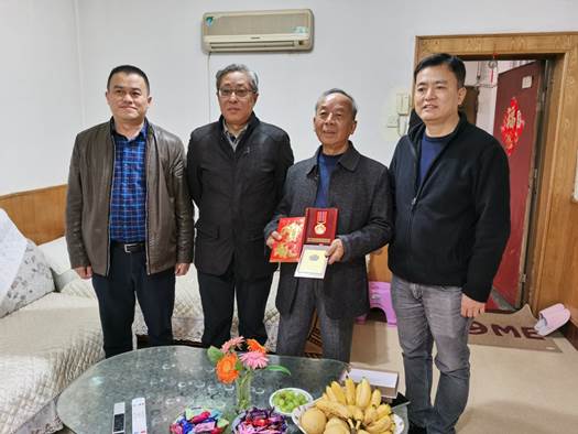 今年是中国抗美援朝入朝作战70周年,遵照习近平总书记“崇尚英雄、学习英雄、关爱英雄”的指示精神,2020年10月21日,成都生物所所长吴宁、党委书记兼副所长叶彦、党委副书记兼纪委书记蔡长江一行去到抗美援朝时期入朝作战的朱革生和戢泽发2位老战士家里慰问,送去了由中共中央、国务院、中央军委颁发的“中国人民志愿军抗美援朝出国作战70周年”纪念章和慰问金。
