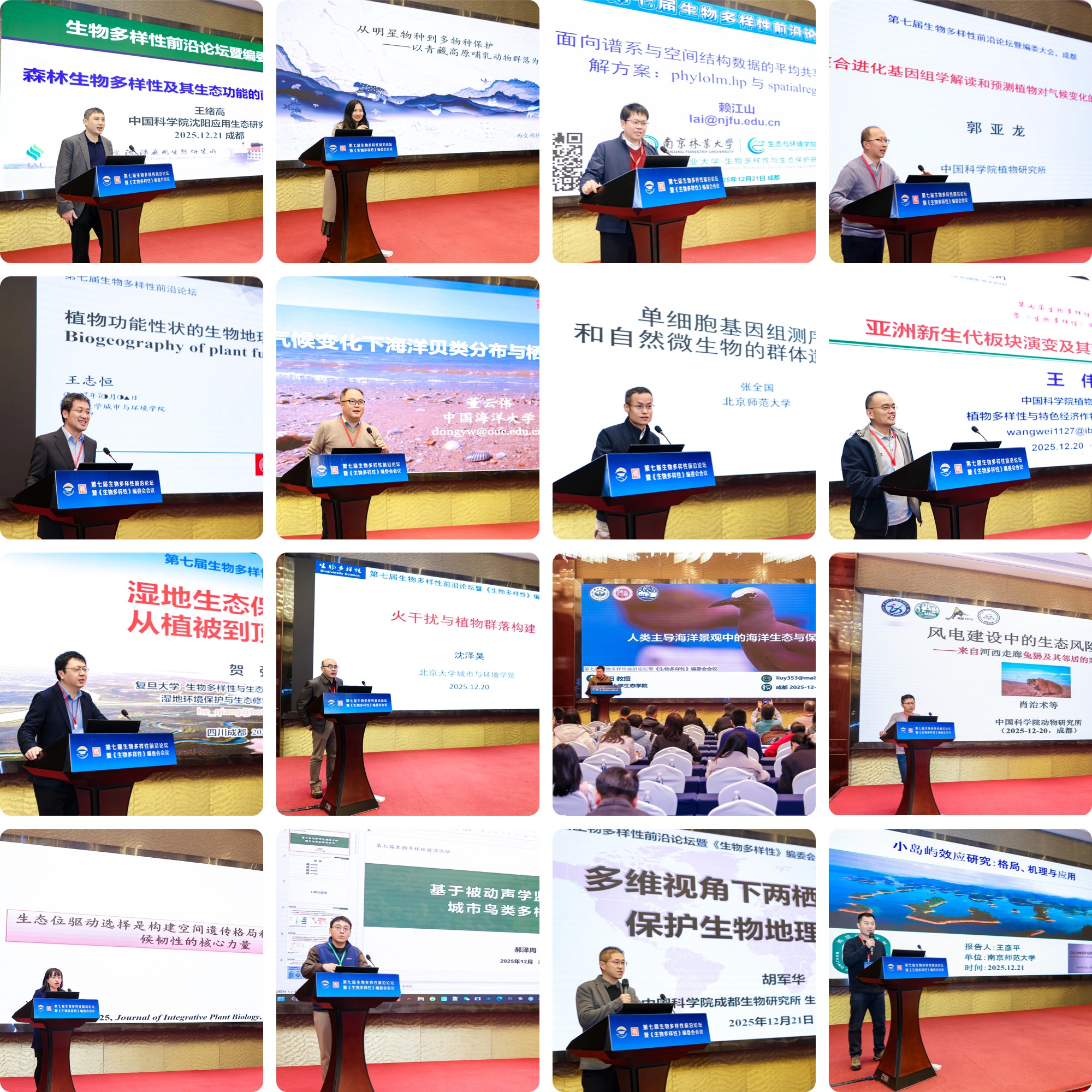 2025年12月19日至22日,由《生物多样性》期刊主办,中国科学院成都生物研究所、《生物多样性》编辑部、《亚洲两栖爬行动物研究(英文)》编辑部及《应用与环境生物学报》编辑部联合承办的“第七届生物多样性前沿论坛暨《生物多样性》编委会会议”在成都成功召开。本次会议由前沿论坛、编委会内部会议及研究生论坛三个部分组成,旨在探讨生物多样性领域的前沿热点及期刊的发展策略,来自83家单位的320多位代表参加会议。