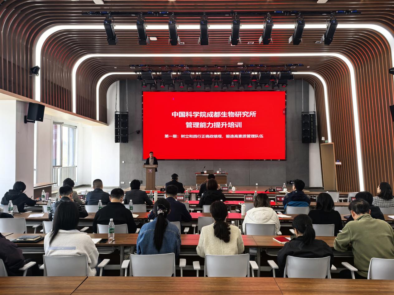 3月26日,中国科学院成都生物研究所管理能力提升培训班正式开班。首期培训紧扣“树立和践行正确政绩观”学习教育要求,旨在全面提升研究所管理干部的政治素养与履职能力,标志着研究所系统性管理能力建设工作全面启动。本次培训由纪委书记李铁牛主持。