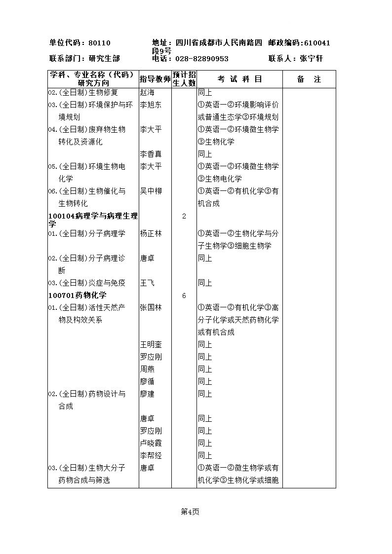 成都生物所2019年博士专业目录