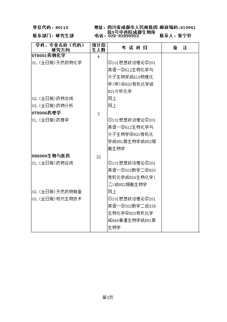中国科学院成都生物研究所2026年“卓越计划”优秀博士生、硕士生专项