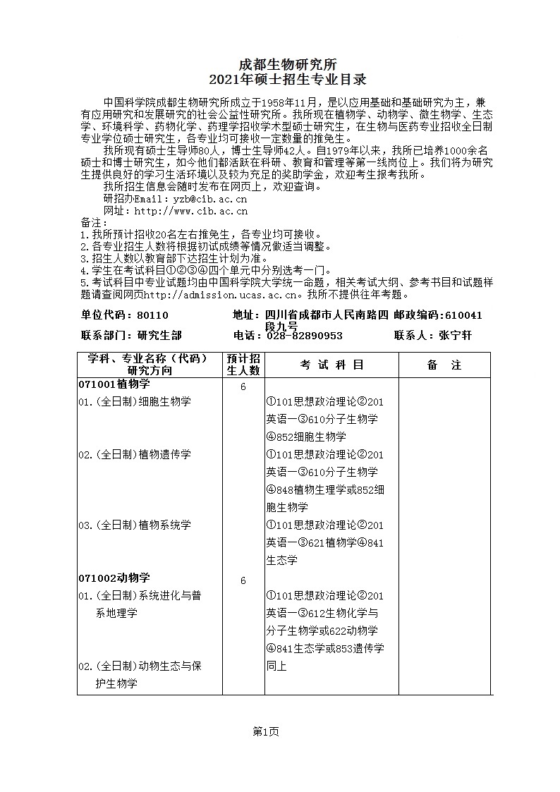 成都生物所拥有植物学、动物学、微生物学、生态学、环境科学、药物化学、药理学等7个博士学位培养点,有植物学、动物学、微生物学、生态学、环境科学、药物化学、药理学等7个学术型硕士学位培养点,有生物技术与工程、制药工程等2个专业型硕士学位培养点,现有在学博士和硕士研究生500余人。